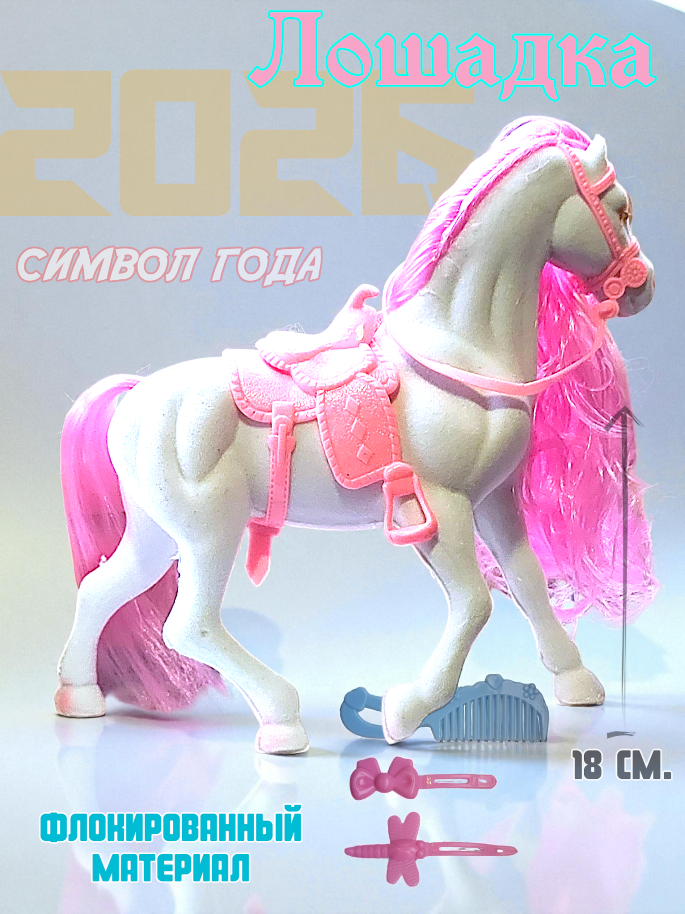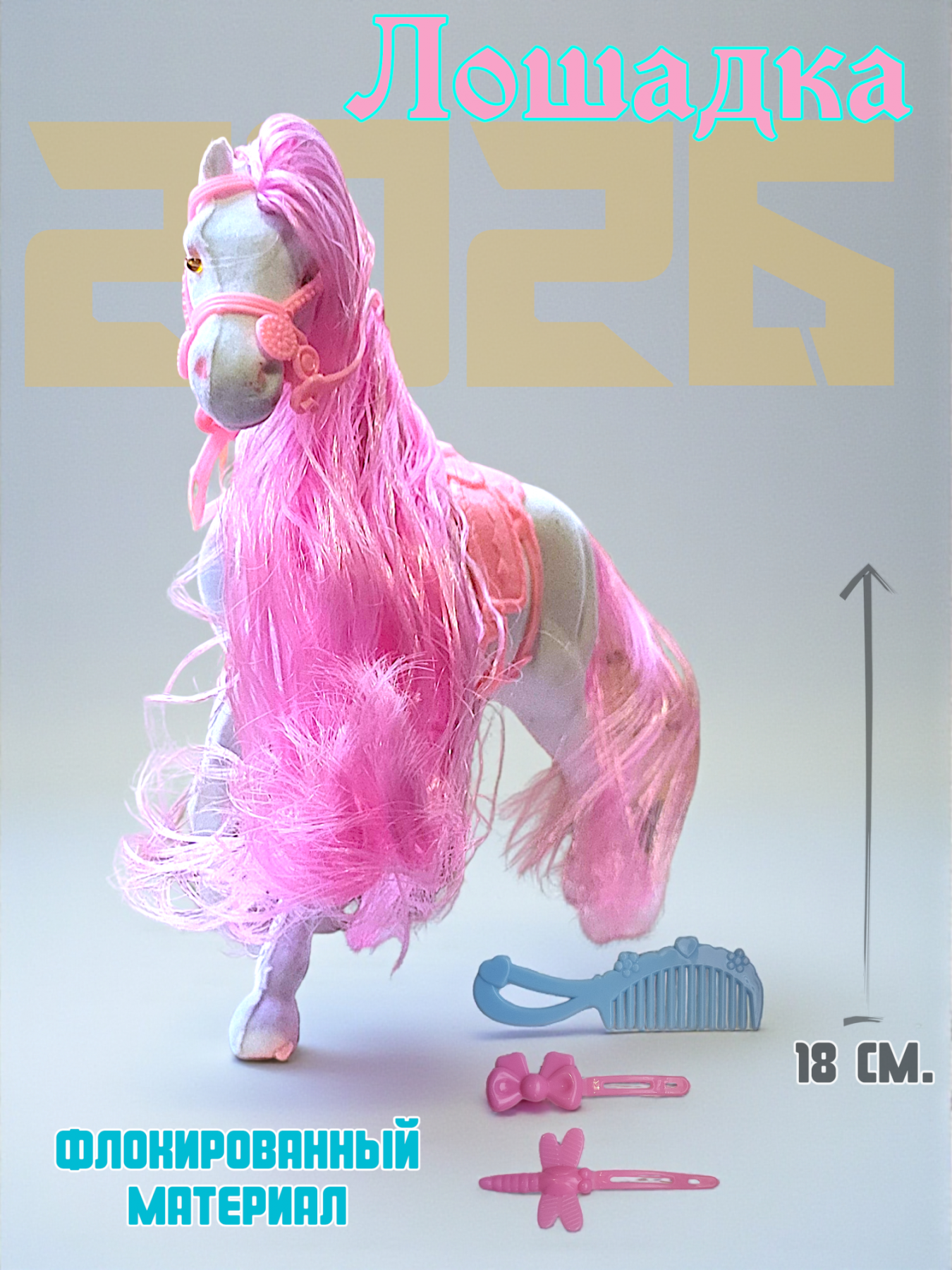В комплекте аксессуары для прически расчесочка и две заколки для гривы.