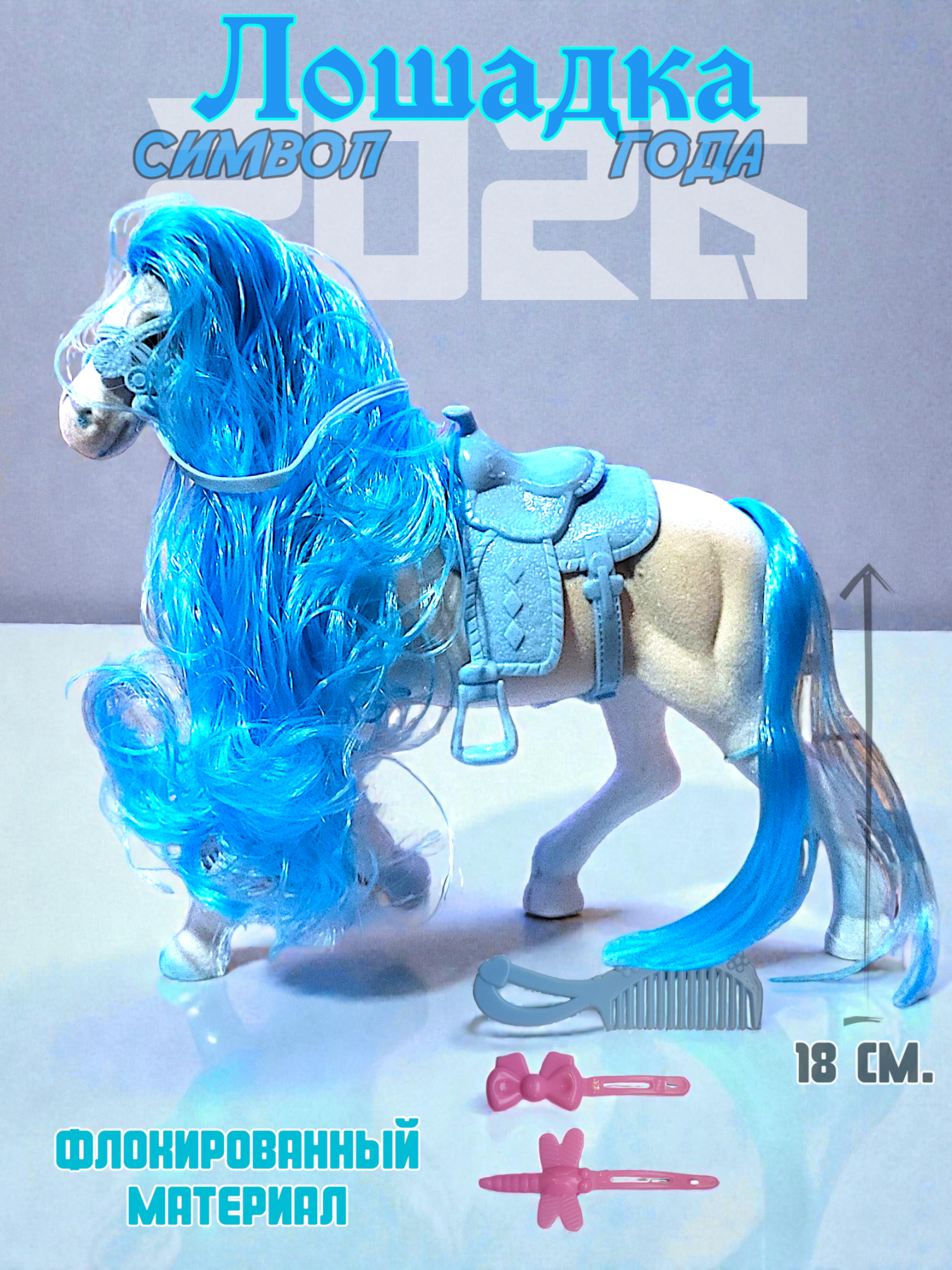 В комплекте аксессуары для прически расчесочка и две заколки для гривы.