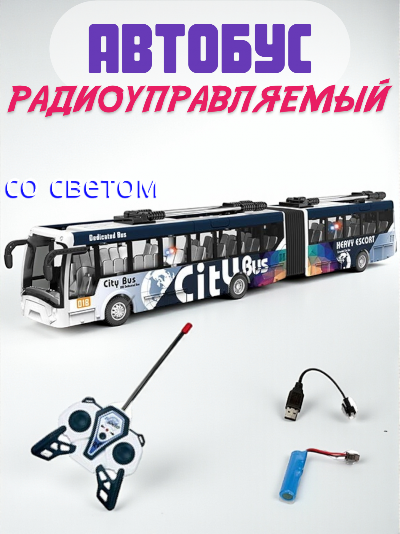 Радиоуправляемый автобус с аккумулятором и пультом в комплекте. Размер автобуса 37 см.