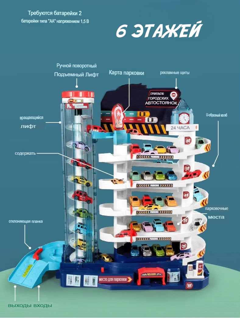 Гараж для машинок MSN Toys 3302А, с лифтом, световые и звуковые эффекты, от 3 лет