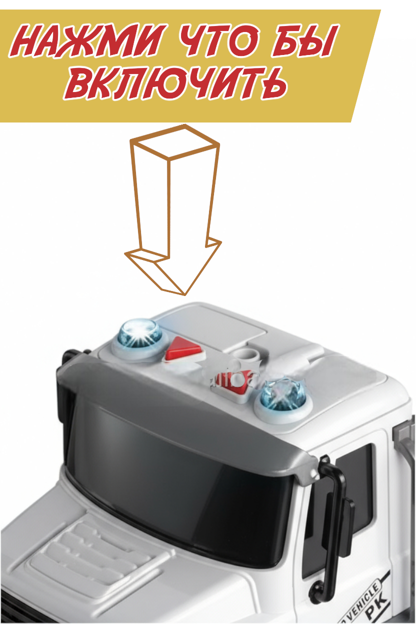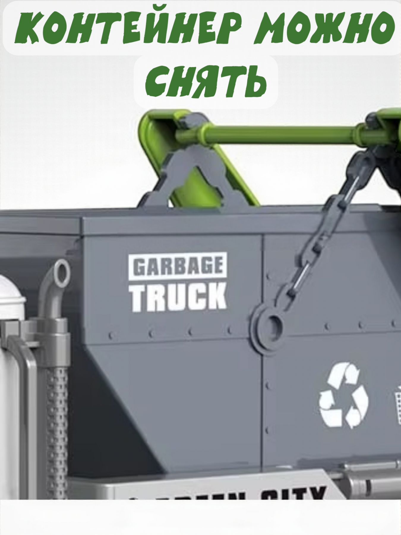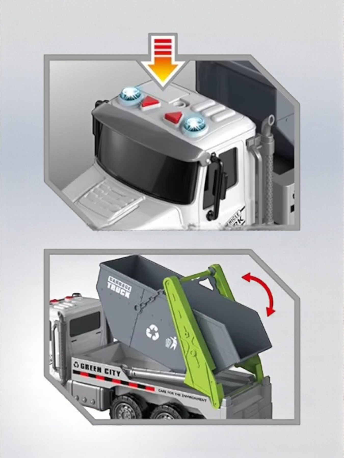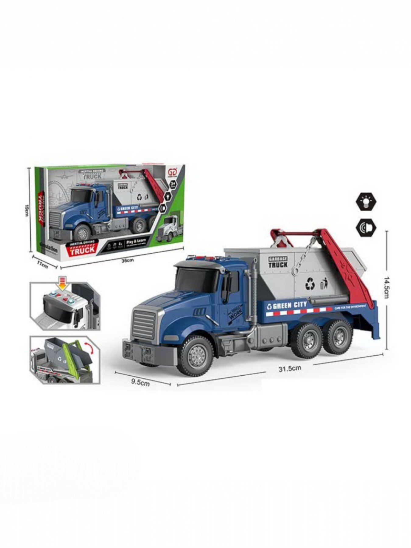 Мусоровоз контейнерного типа со светом и музыкой, инерционный.