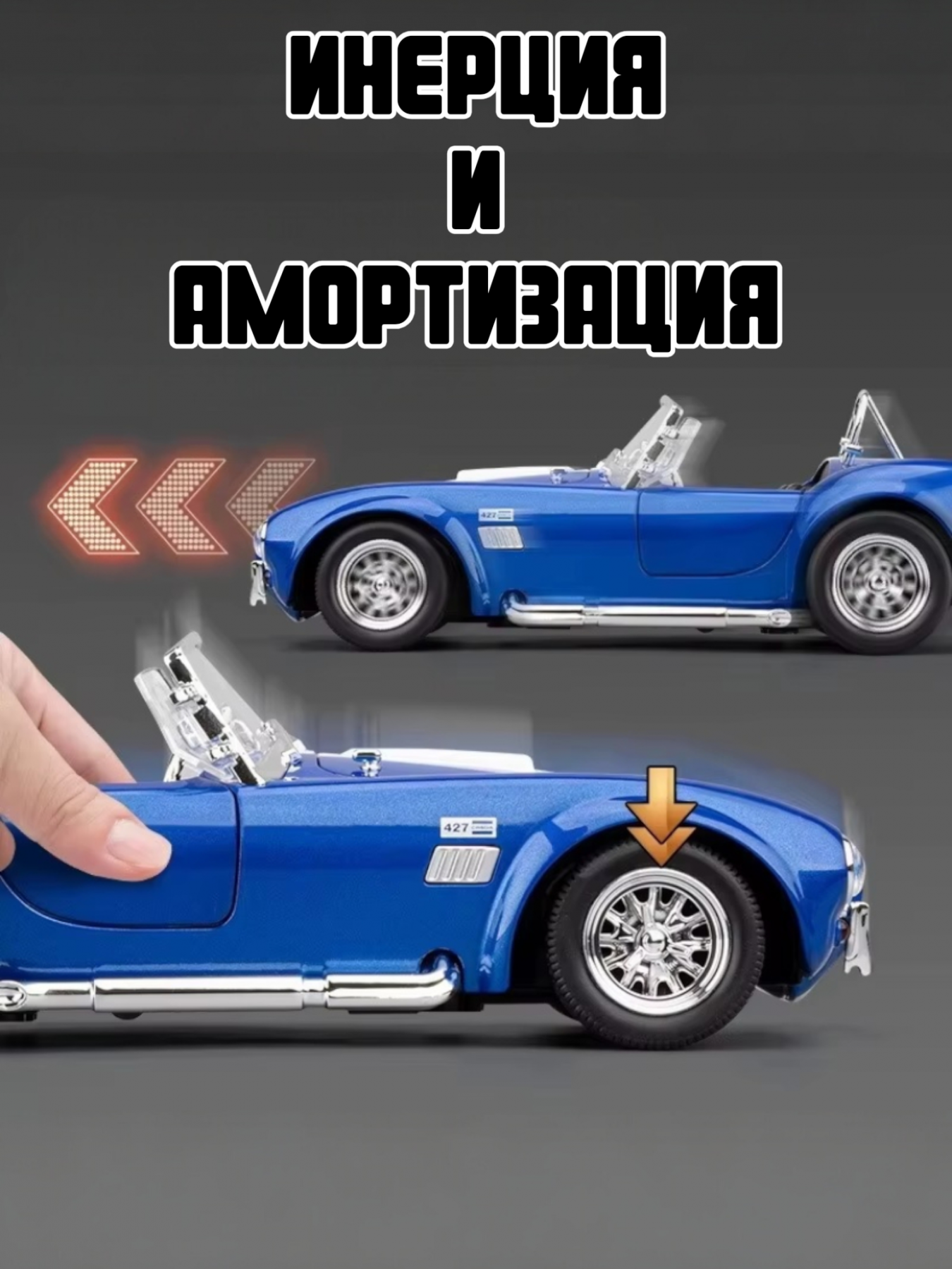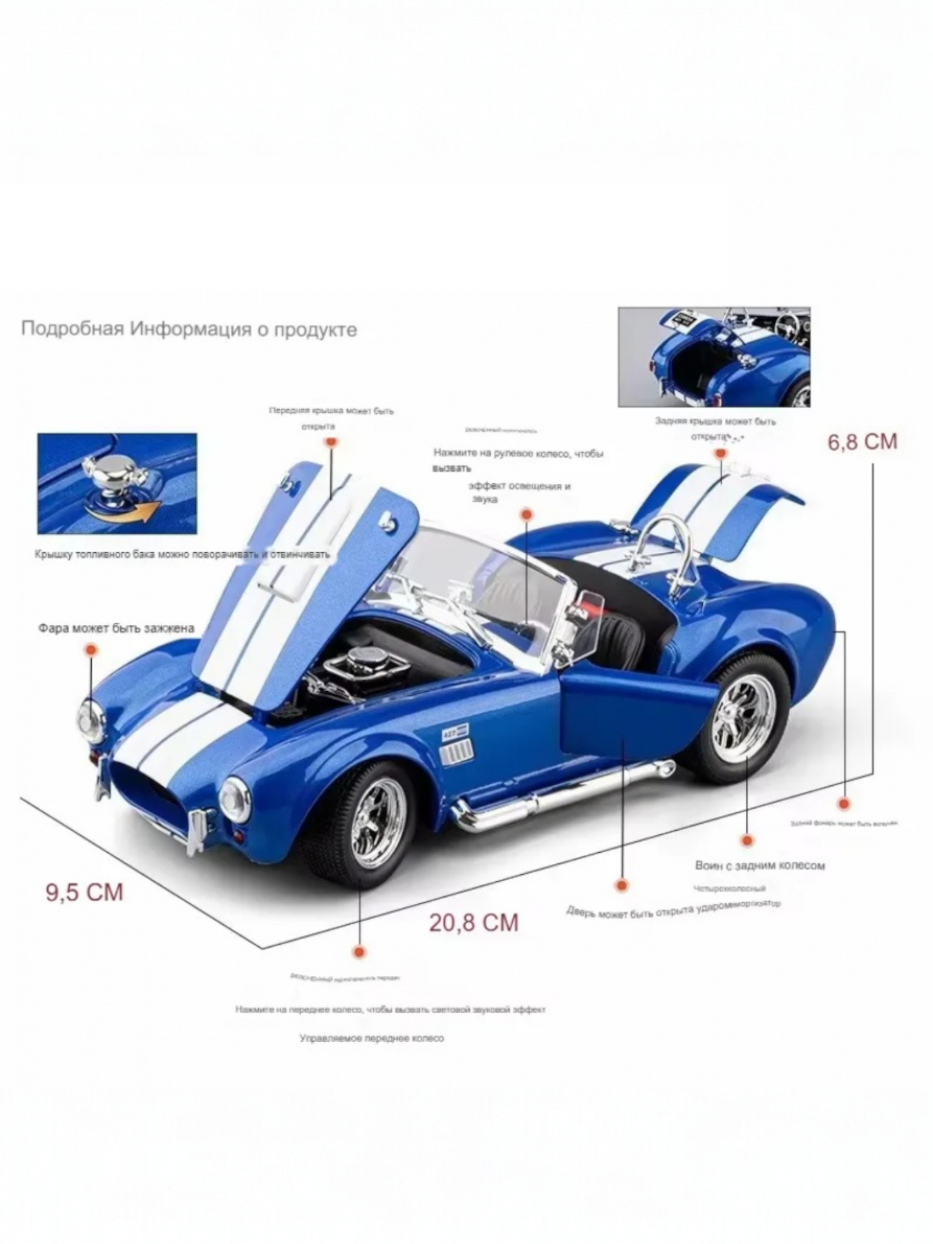 Машинка металлическая модель Shelby Cobra 21 см. Свет, звук, инерция.